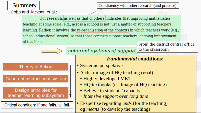 I forbindelse med deres seneste besøg i Danmark fik jeg lejlighed til at lave et webinar med dem. Som det fremgår, har de i mellemtiden skærpet deres budskab en del. De taler nu om gensidigt afhængige kritiske betingelser for elevers og læreres læring. I det perspektiv kan deres forskning - der er konsistent med andres forskning og erfaringer - hjælpe os med forstå, hvorfor elevernes udbytte ikke er steget til trods for årtiers indsaster .